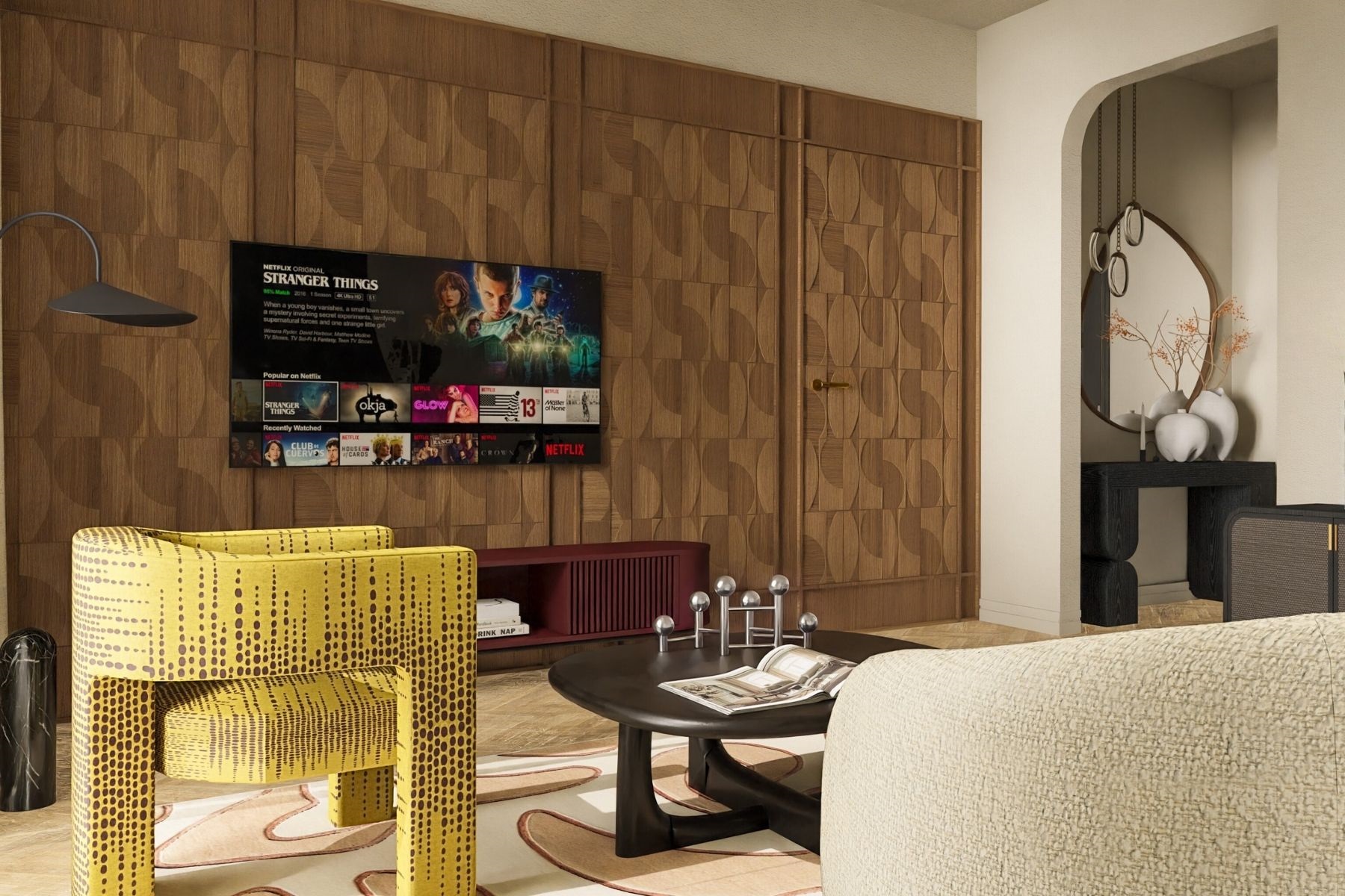 Modern Mokotów to autorska koncepcja wnętrza stanowiąca współczesną interpretację modernizmu w estetyce soft luxury. Projekt opiera się na równowadze między dyscypliną architektoniczną a miękkością materiału i światła, budując przestrzeń o klarownej strukturze i wyważonej ekspresji.